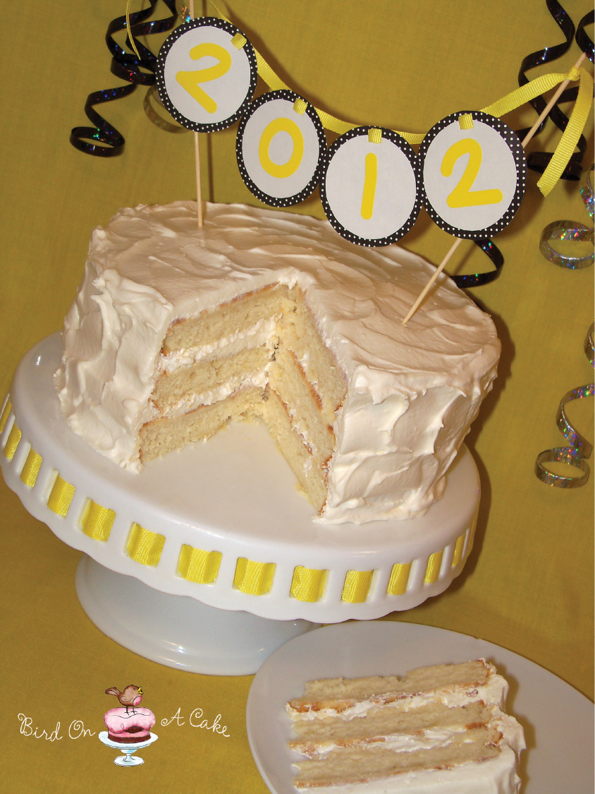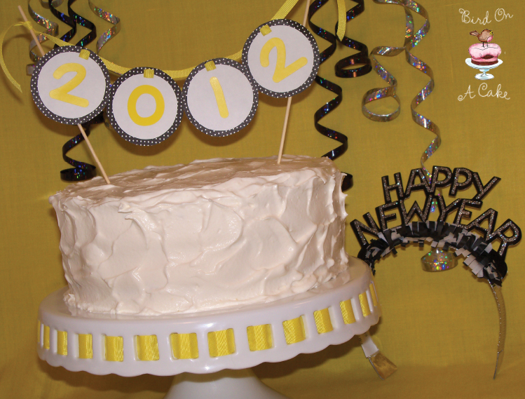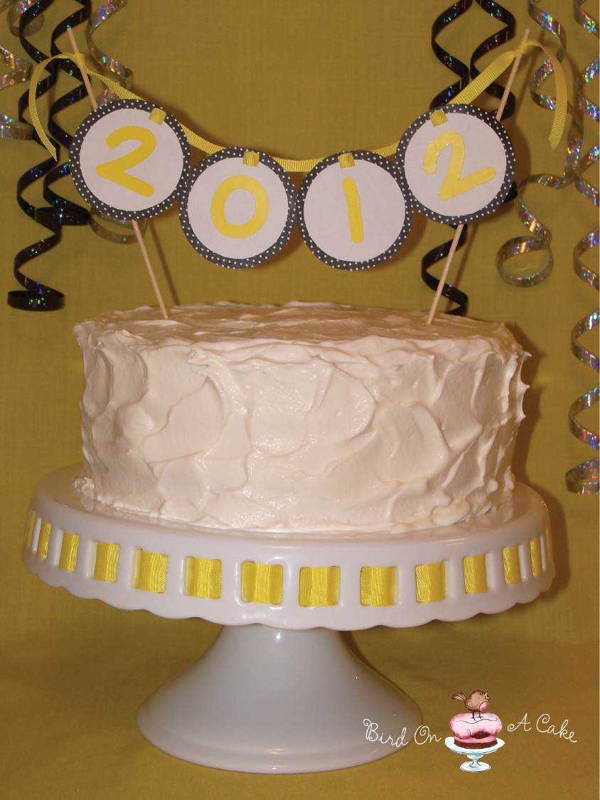I attached my numbers to the smaller circles, which I then glued to the larger circles. I punched out 2 rectangle shapes at the top of each circle, and threaded my ribbon through. I cut my skewer in half, and tied the ribbon to the ends. To finish, I placed the skewers in the cake at an angle.